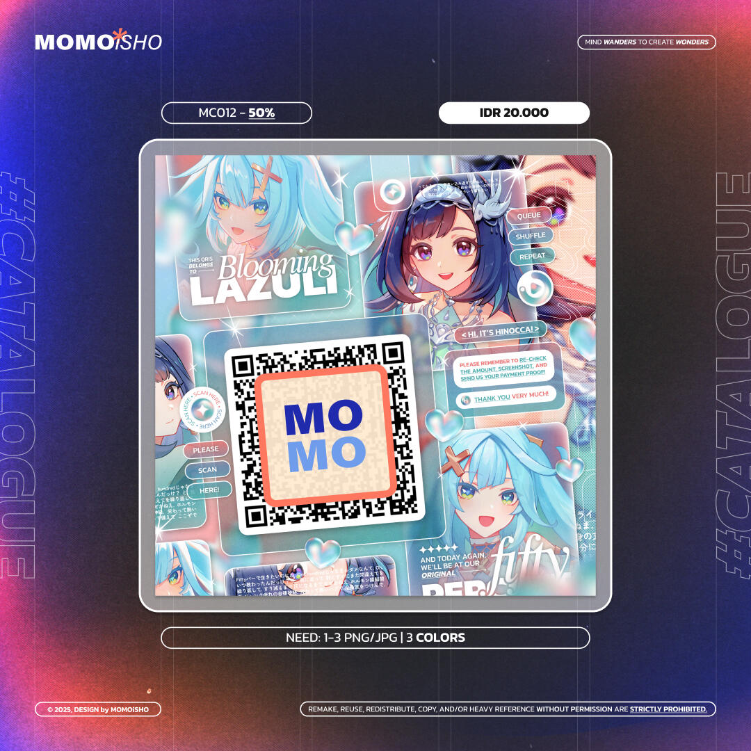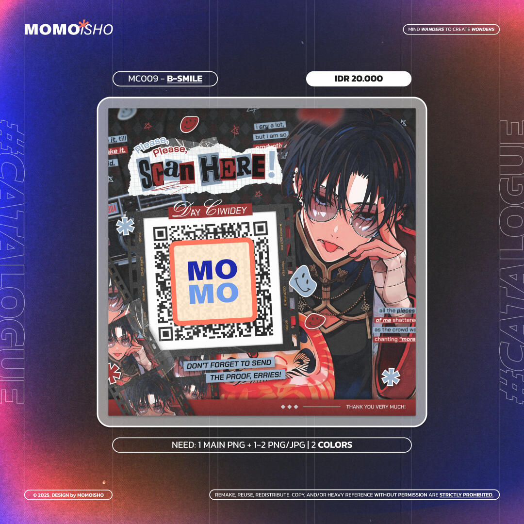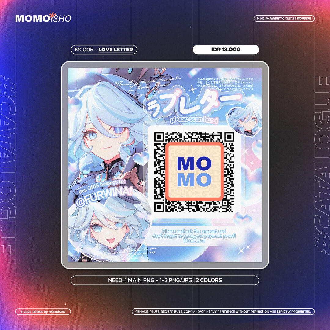 1.Payment will be done through QRIS/BCA/PayPal.2. A 50% down payment of the starting design price is required before work begins. For example, if a design starting price is IDR 40,000,-, then the down payment is IDR 20,000,-.3. Should there be a case where a customer cancels the order within agreed working duration and MOMO has started working on the design, down payment will not be refunded.4. If a customer [fails to make a final repayment within 5x24hrs after MOMO sent an invoice, the order will be considered canceled and down payment will not be refunded.5. A loyalty card stamp will be given to customers who order a minimum of IDR 50,000,- ($4). Applicable for multiples for a maximum of 4 stamps in one purchase.