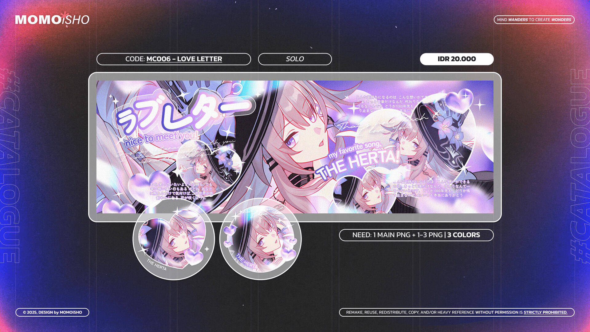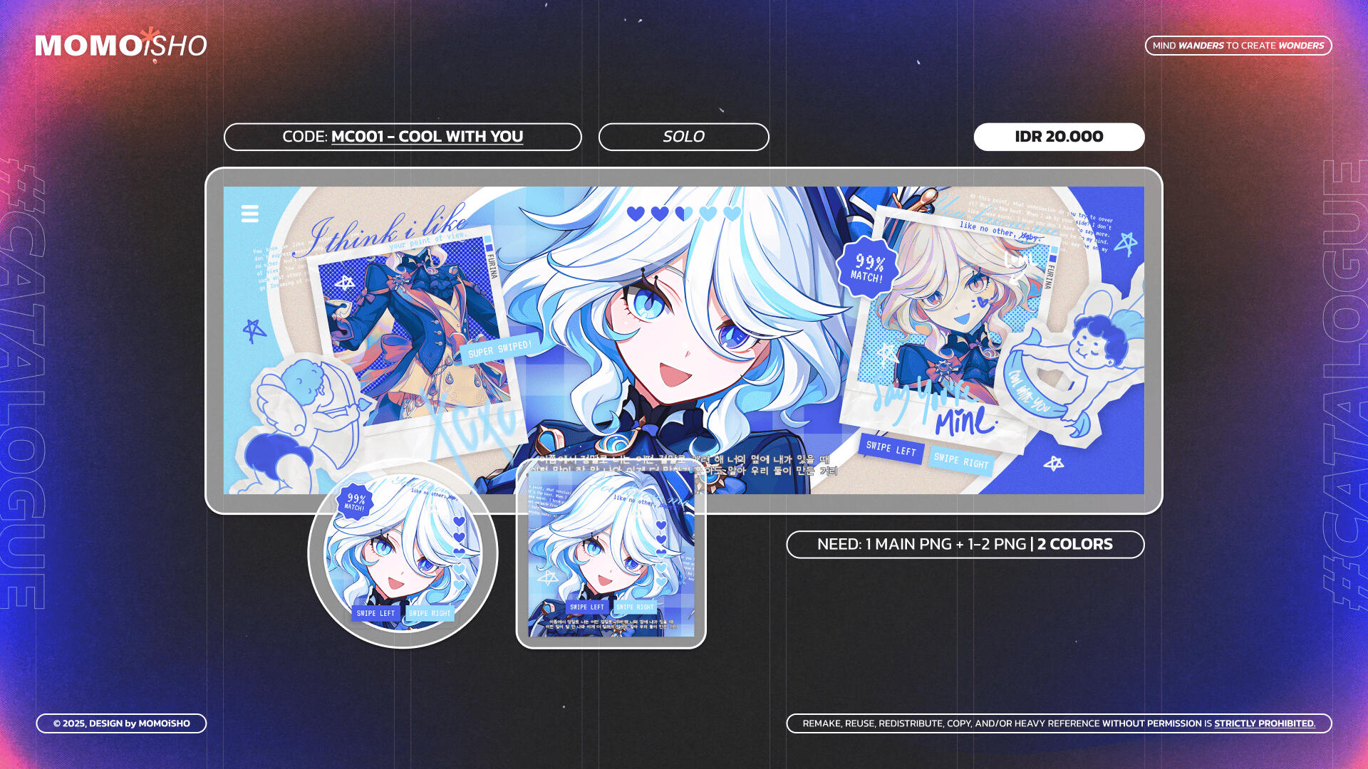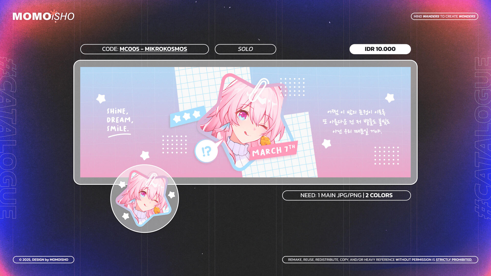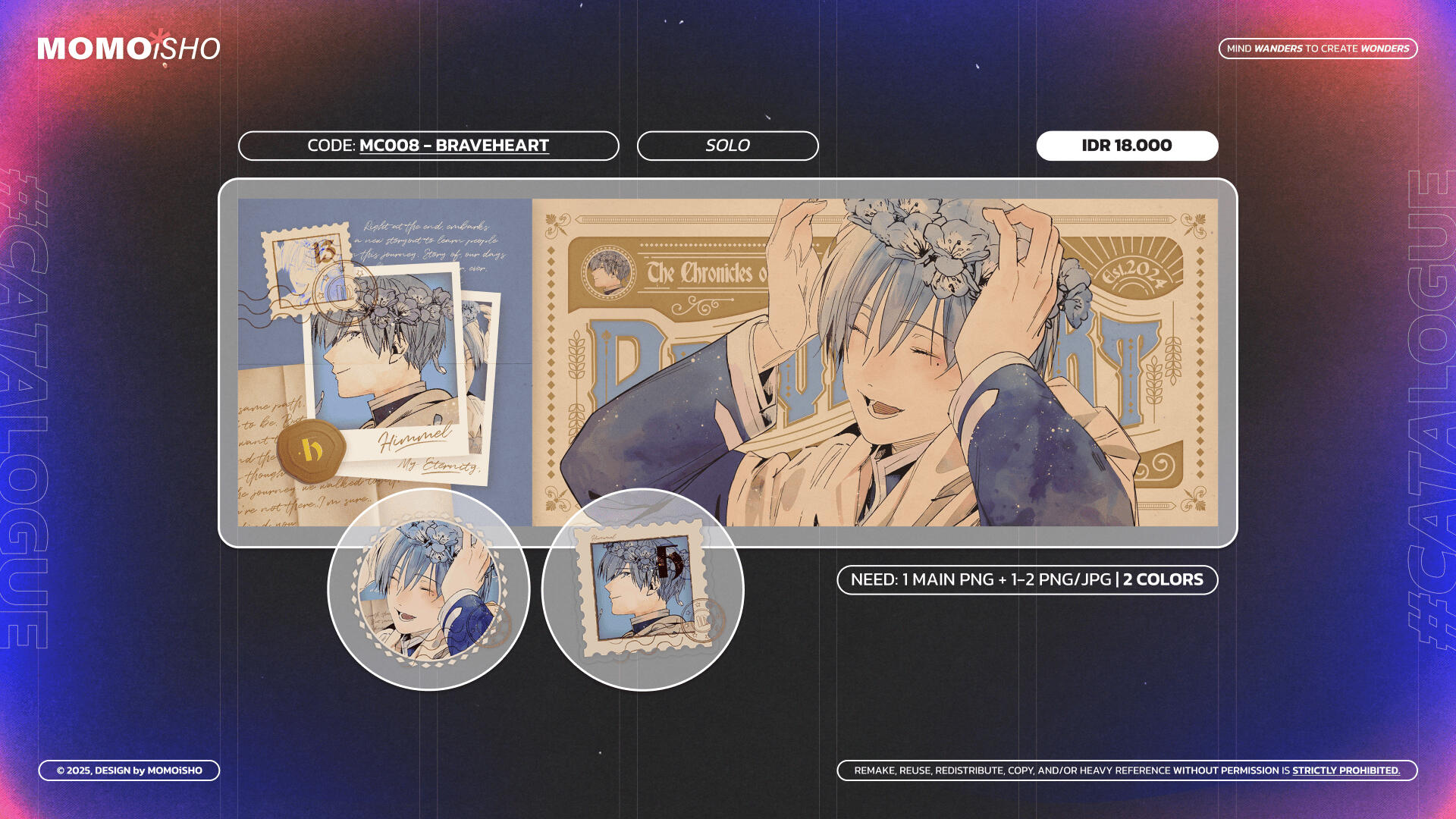 IN RUSH slot is very limited. Duration is counted from the payment confirmation and TRELLO link delivery. Add on IN RUSH and your queue will be moved to top. Please inform MOMO when sending the form if you're interested10. Customers are granted 2x revisions (retext, recolor, re-filter, etc). Add on revisions IDR 3.000,- ($0.3) /revision. Please deliver the revision as detailed and as comprehensive as possible.11. If you pick “colors from MOMO”, please note what kind of colors you're requesting. e.g: want a dominant blue with pastel colors ; want dull colors with purple as the main color ; don't want green ; etc. If there are no requests, MOMO will adjust the recolor according to the render.12. A purchase of 1 Layout will grant customers 1 Loyalty stamp. Customers are allowed to claim MOMO's Loyalty Card reward (if there's any) in this batch.