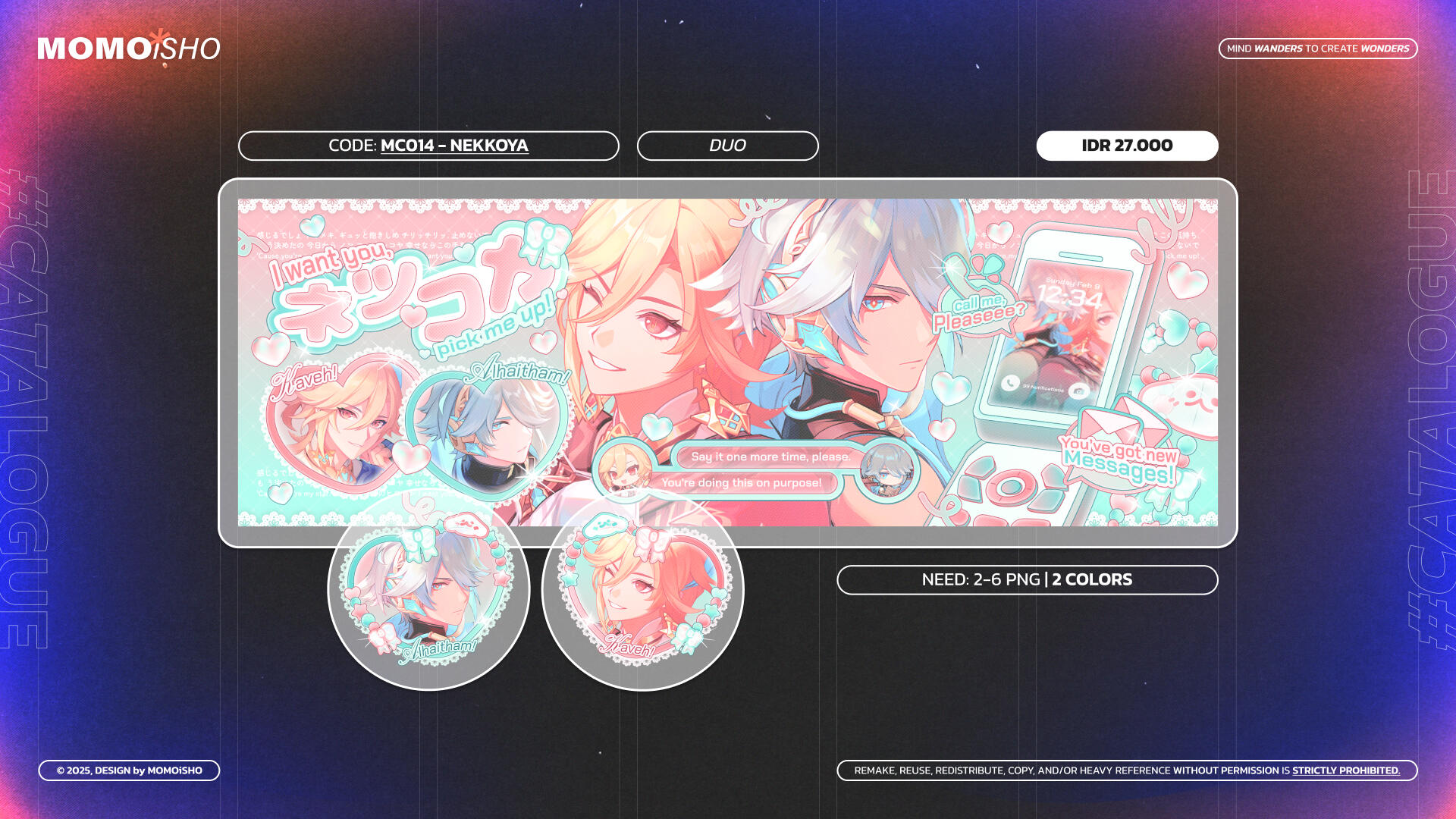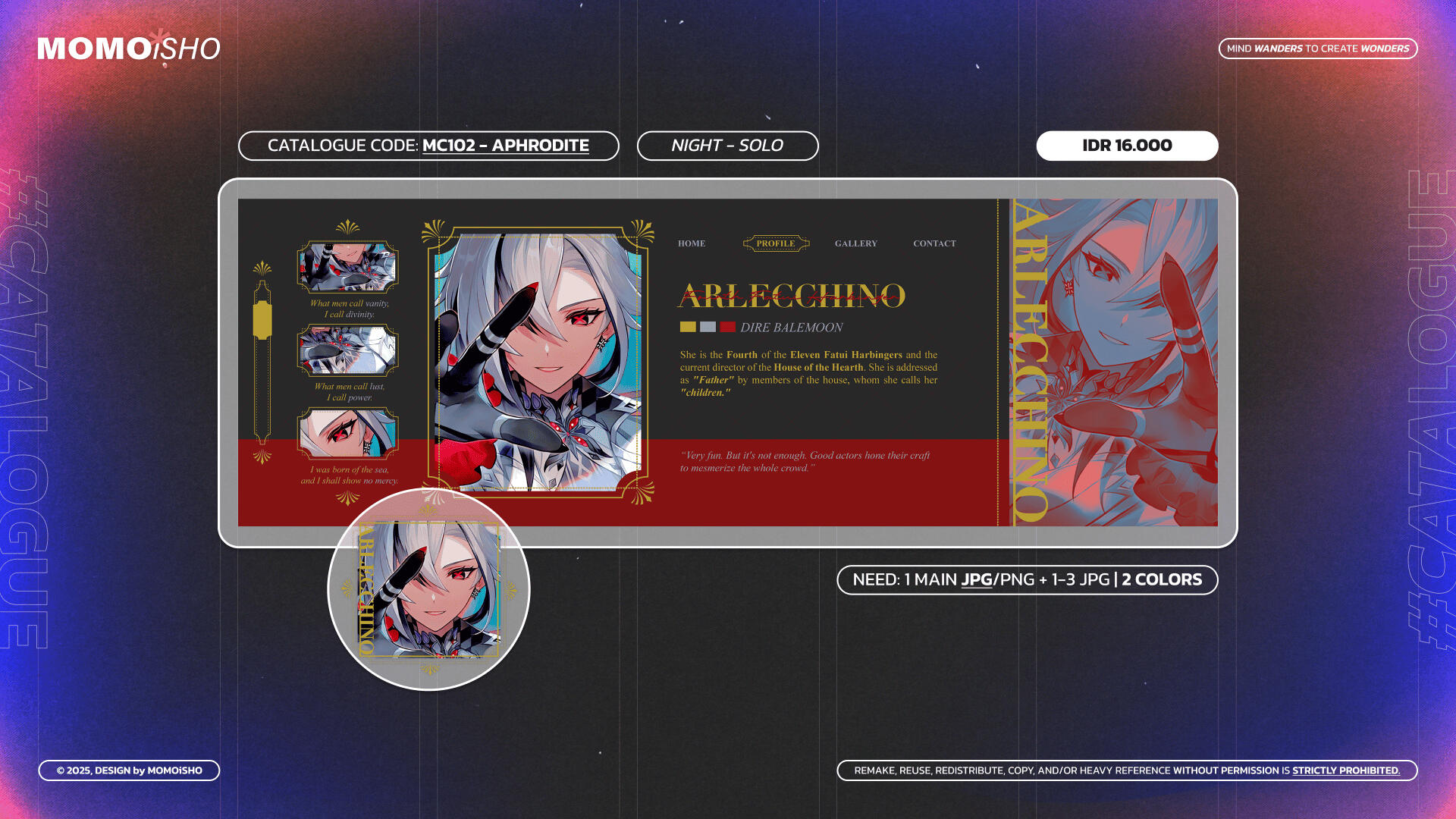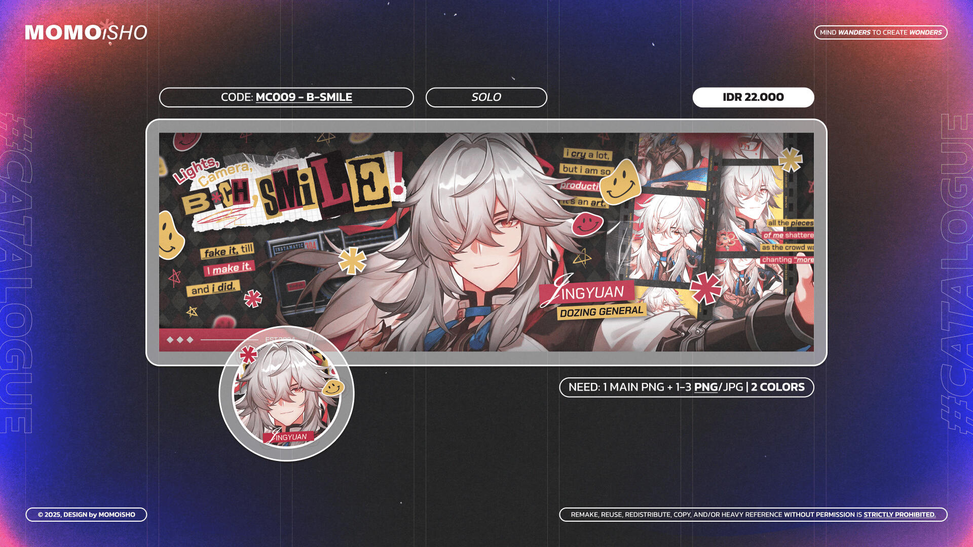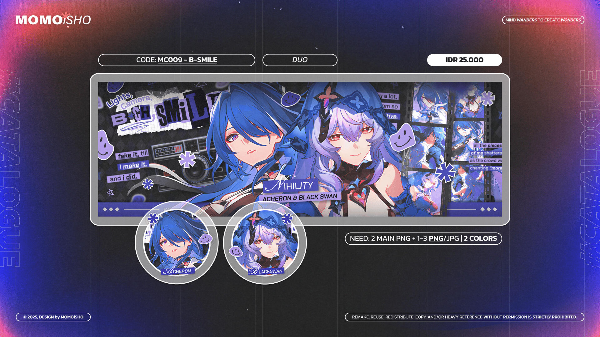 1. By Request slot booking will be done through Google Form. If customers manage to get a slot, MOMO will re-confirm through DM. FILLING THE FORM & GET THE SLOT = MUST TAKE.2. If within 1x24hrs (after MOMO confirmed the slot through DM) customer have yet to submit the FORM or payment proof without informing MOMO, the slot will be passed to the next-in-line.3. Customers are allowed to use proxy.4. Please fill the G-FORM with the amount of slot(s) wanted. One customer = 2 slots max. MOMO will take a TOTAL of 48 SLOTS in this batch.5. Customers are required to provide render (transparent PNG photo) in HD-res. MOMO has prepared filters in accordance to each catalogs, but if the photos from customers are already filtered, MOMO will use it as it is.6. Render booking can be done after MOMO confirmed your slot. (This usually only applies to robin from HSR, do inquire MOMO further if you have any.)7. By Request progress will be queued and updated through Trello after payment is done. ETA for 1 slot is 1-7 days after moving to the “on progress” list in trello. ETA might be longer or shorter depending on MOMO's full-time job and real-life happenings. (MOMO will always keep customers posted through X timeline or trello.) MOMO's Target is to get everything done within 14 days.8. If customer's slot is still "on queue", customers are allowed to alter the form. Please do inform MOMO.9. MOMO accepts IN RUSH order with extra fee: